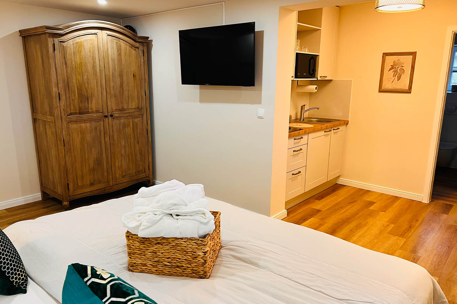 Das Apartment 1 bietet auf 23 m² Platz für maximal 2 Personen und überzeugt mit einem ruhigen Gartenblick. Ideal für Paare oder Singles, die eine gemütliche und private Atmosphäre suchen.