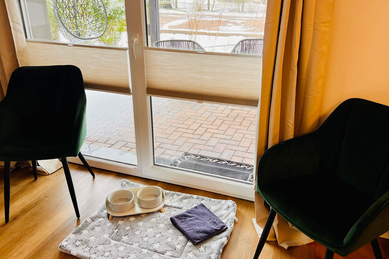 - pro Haustier 15 €/ Nacht; ab 14 Nächte 10 €/ Nacht
